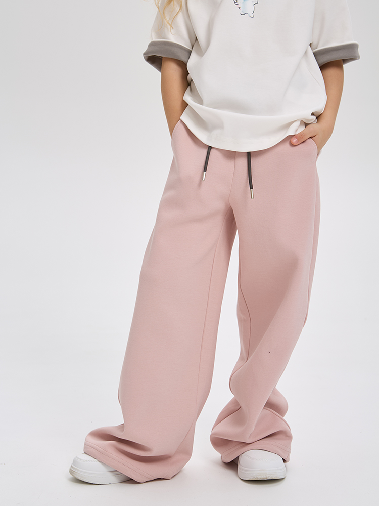 Свободные, прямые брюки из мягкого рельефного трикотажа, с поясом на резинке, дополненной шнурком для регулировки. Идеальный выбор для весенне-летнего базового гардероба.