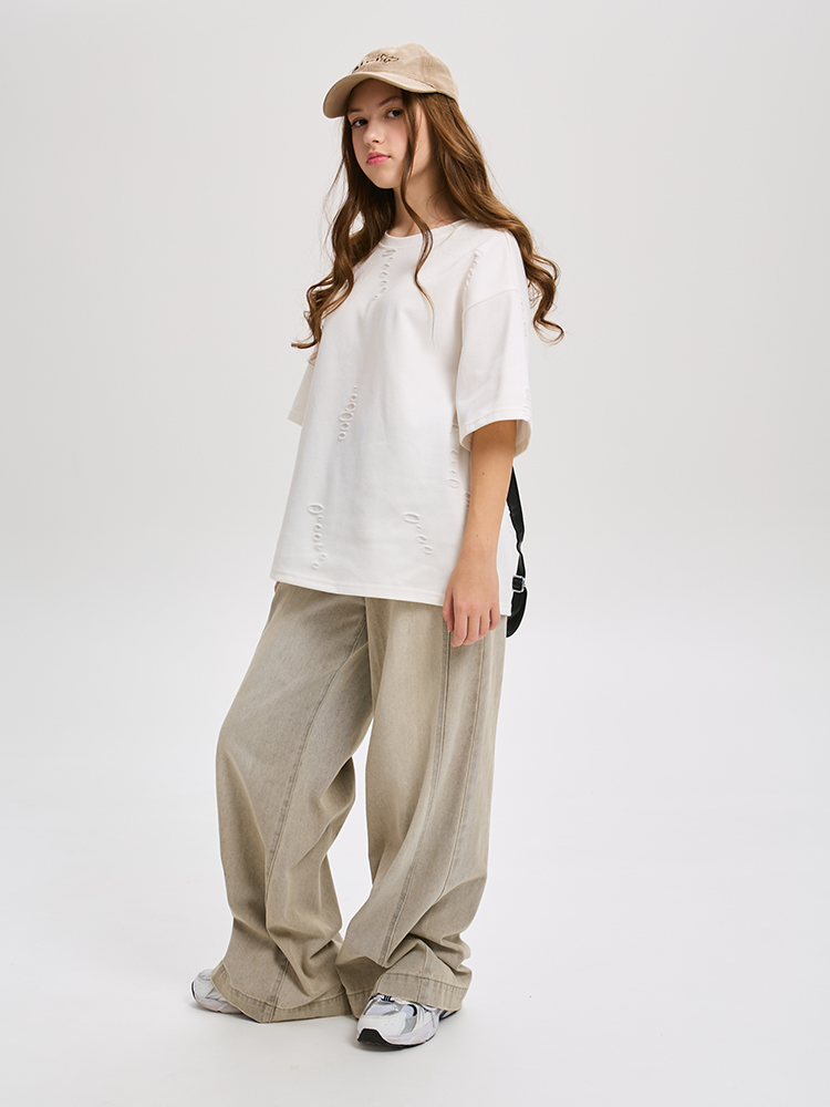 Широкие прямые джинсы — это один из самых популярных трендов среди подростков. Выполнены из денима средней плотности с добавлением эластана. Они сочетают в себе комфорт, стиль и свободу самовыражения.