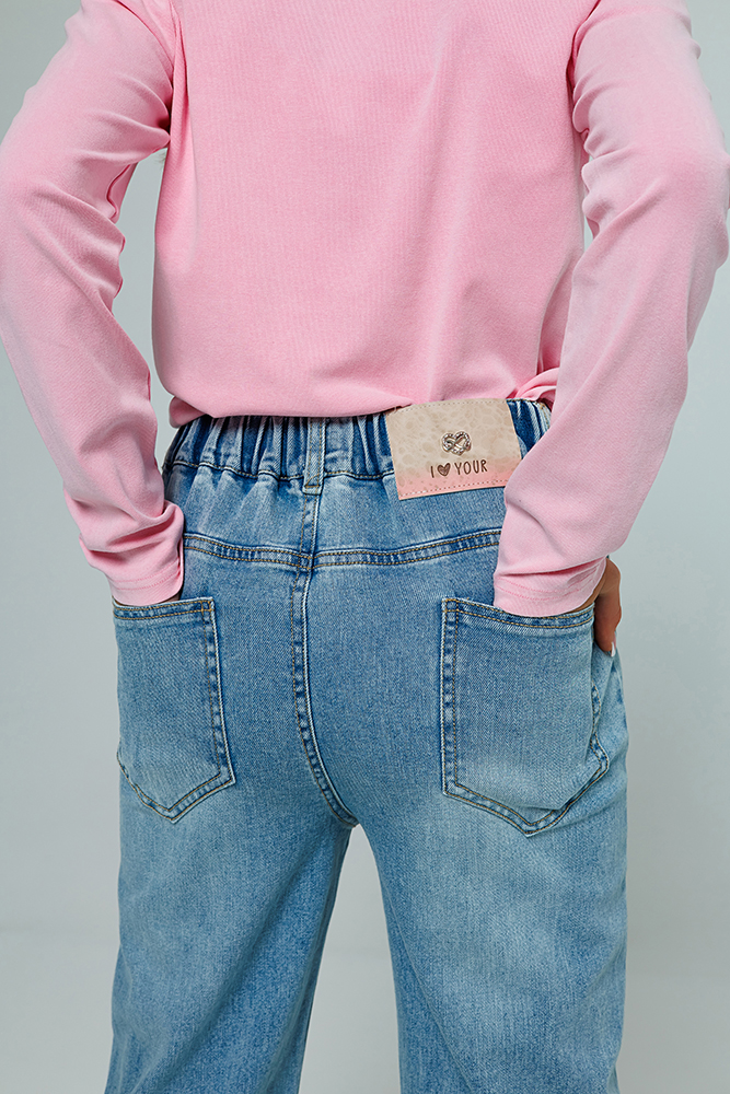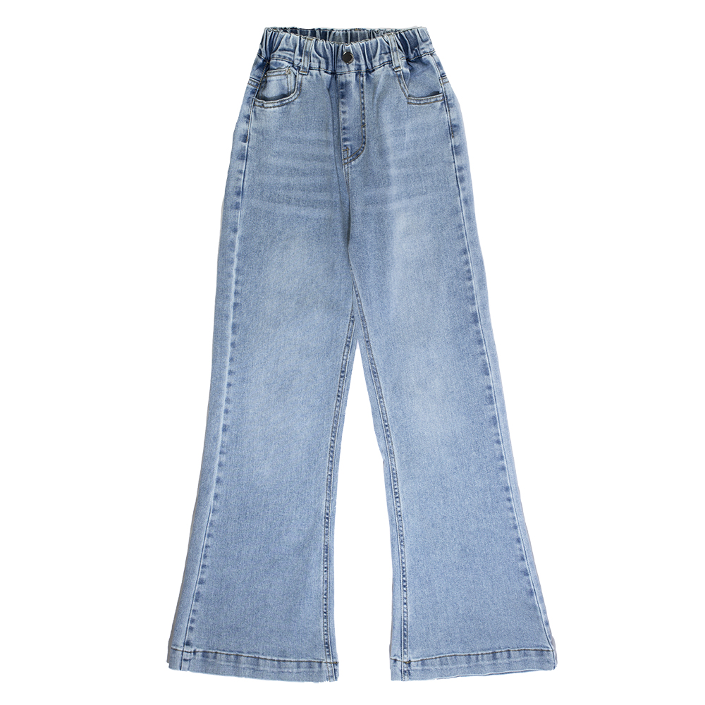 Стильные джинсовые брюки из мягкого светло-голубого денима средней плотности. Модный клеш от колена создает стильный силуэт, а эластичный пояс на резинке обеспечивает комфорт и удобство при носке. Идеальный выбор для школы, прогулок и создания повседневных образов.