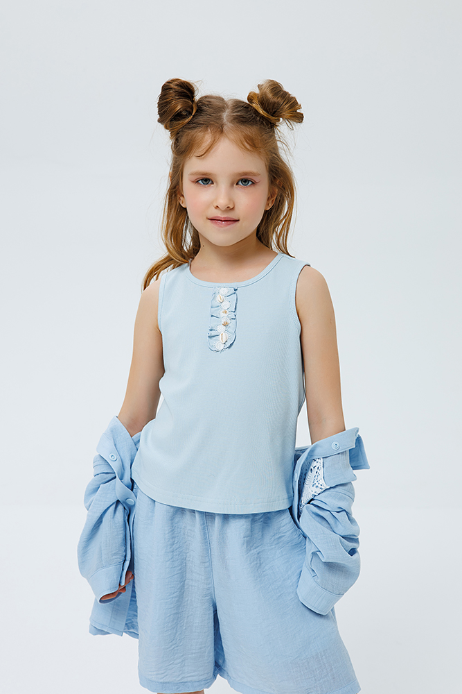 Приталенная майка для девочки из эластичной ткани.