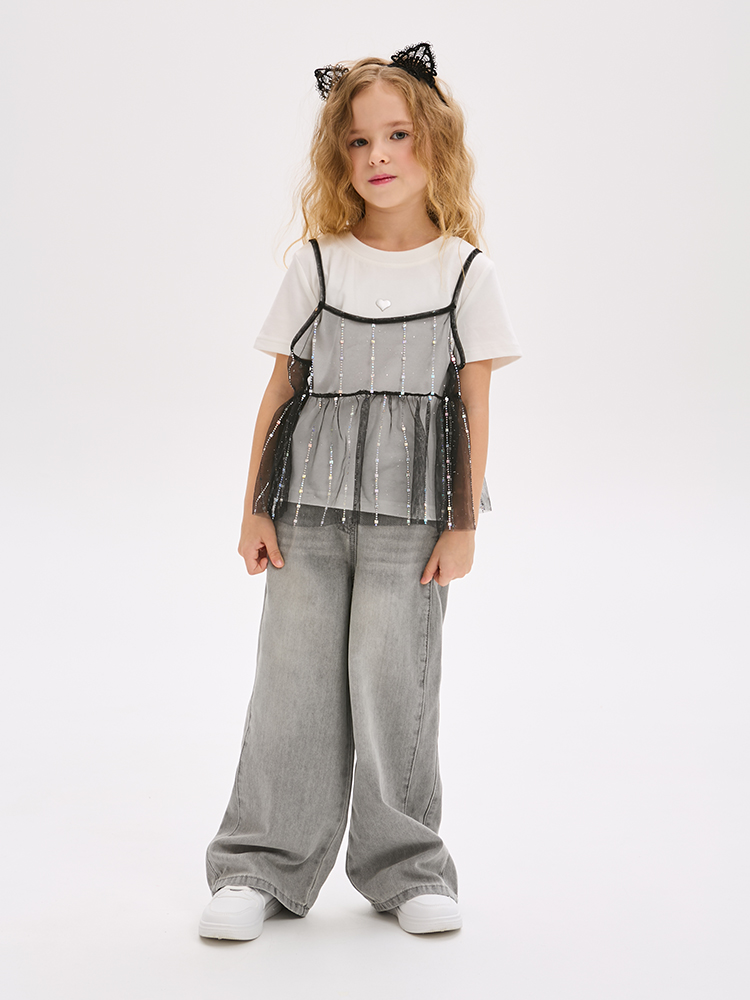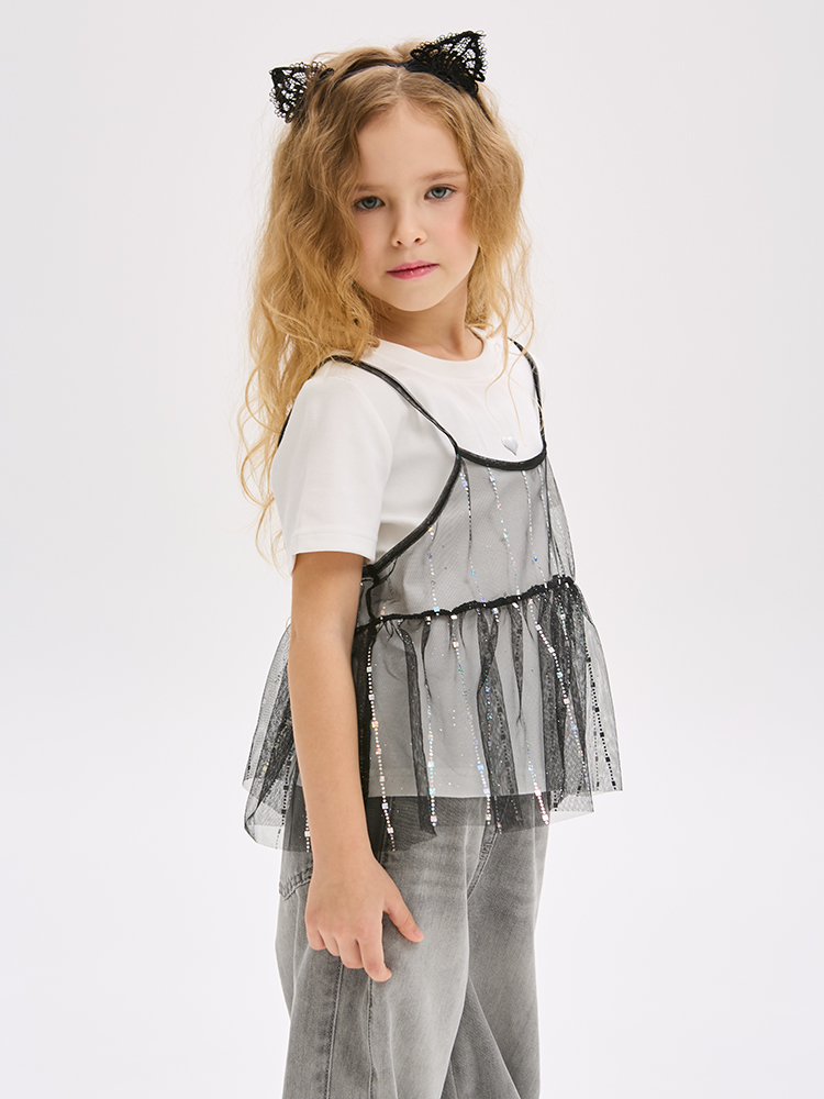 Футболка для девочки трикотажная в комплекте с накидкой.