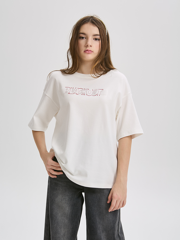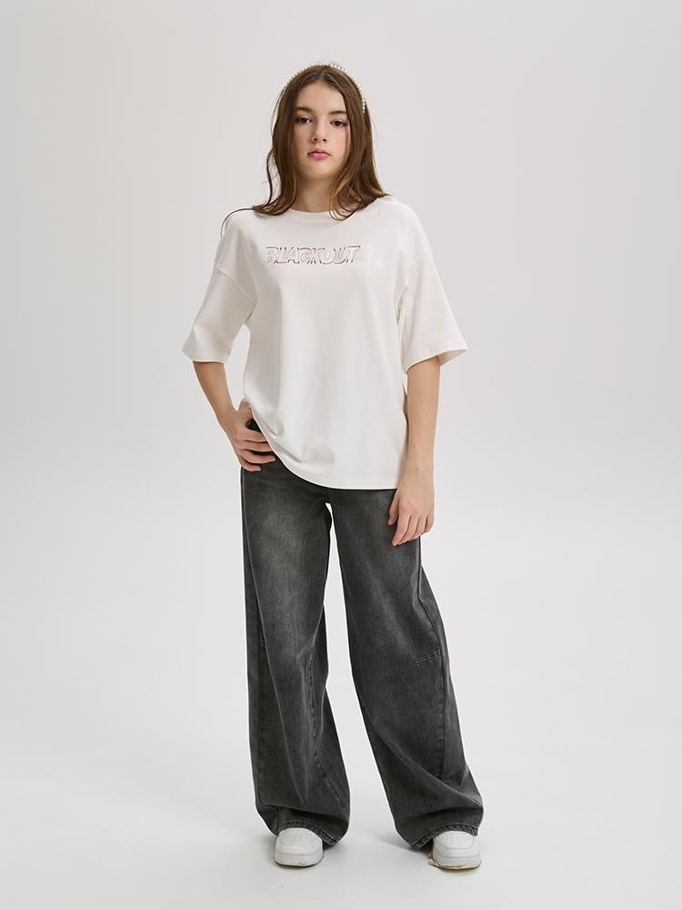 Футболка свободного кроя из мягкого трикотажа с минималистичным принтом. Прямой, расширенный силуэт создает ощущение легкости и свободы.