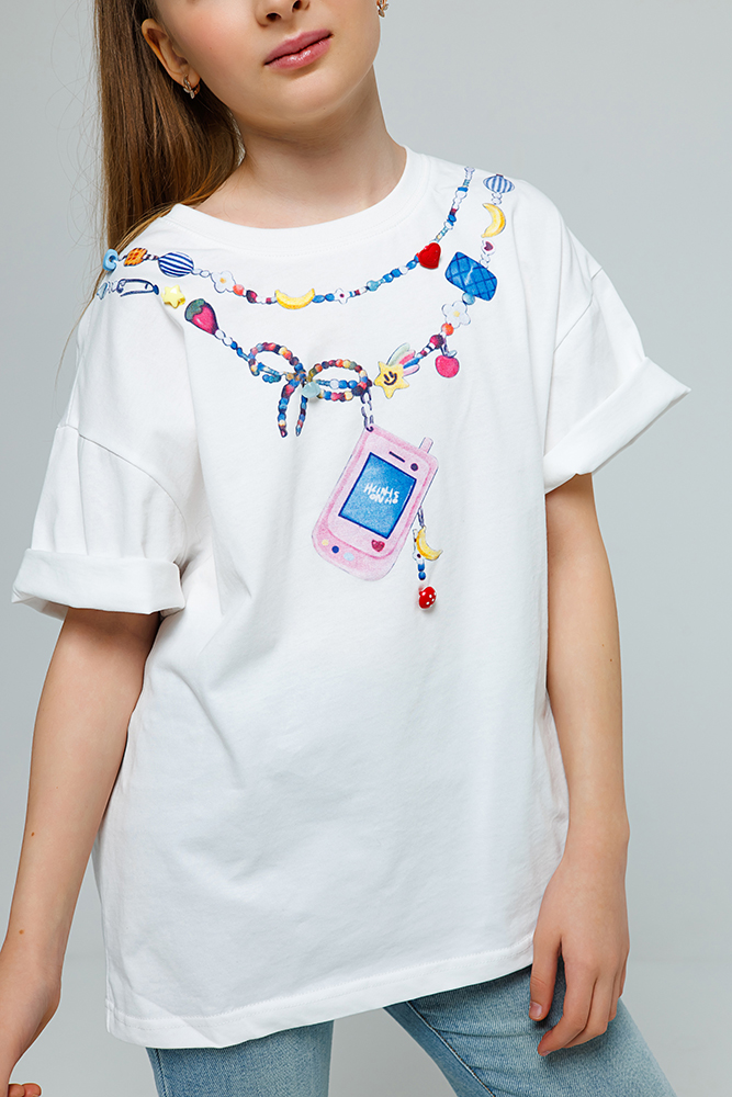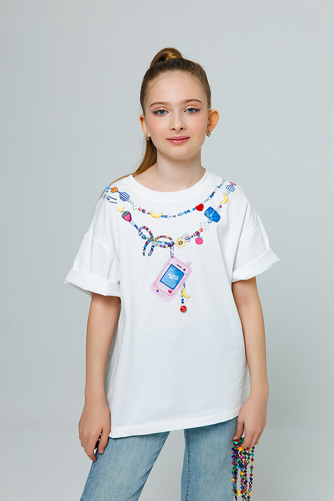 Футболка свободного кроя из мягкого хлопка с акцентным принтом . Круглый вырез и короткий рукав. Это удобная, стильная и универсальная модель для создания повседневных образов.