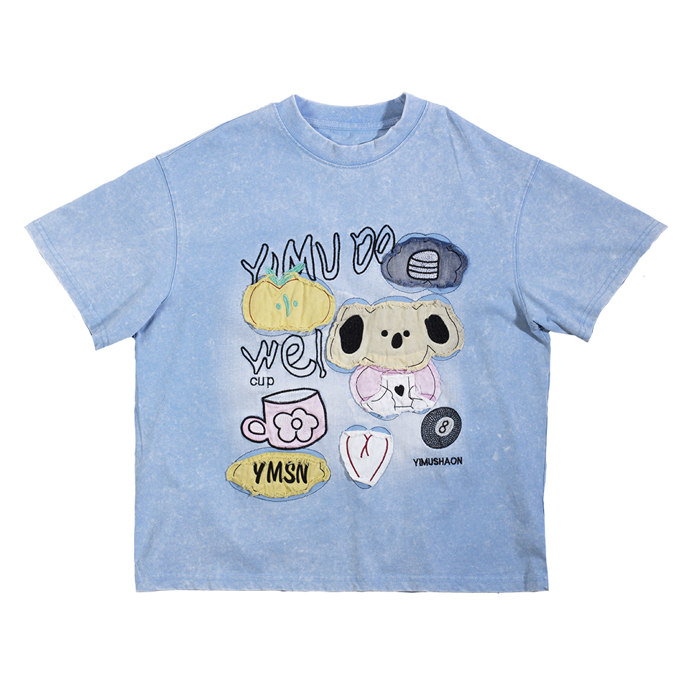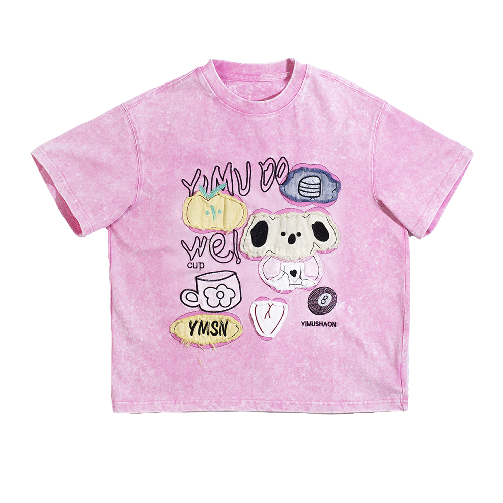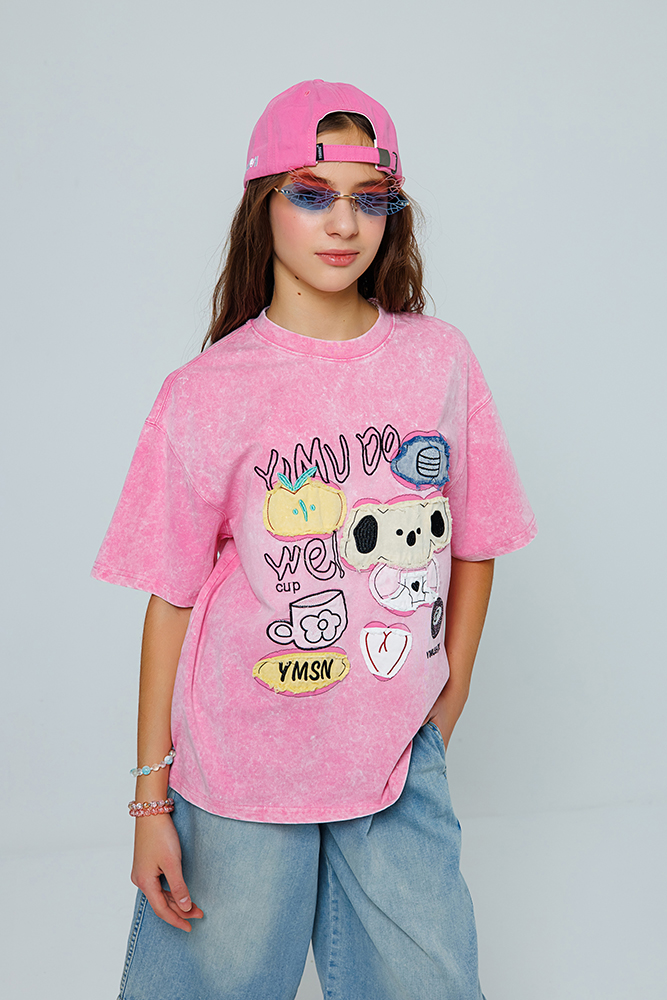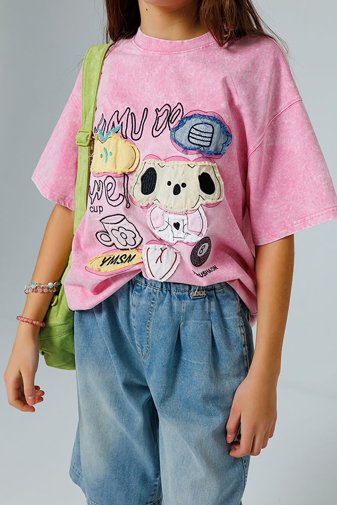 Модная футболка свободного кроя с эффектом «вареной» ткани. Мягкий трикотаж из 100% хлопка. Круглый вырез и короткий рукав. Дизайнерская аппликация придает модели индивидуальность, а трендовая цветовая гамма позволит создавать актуальные образы каждый день. Футболка не нуждается в дополнительных аксессуарах — дизайнерский элемент уже создает завершенный лук.