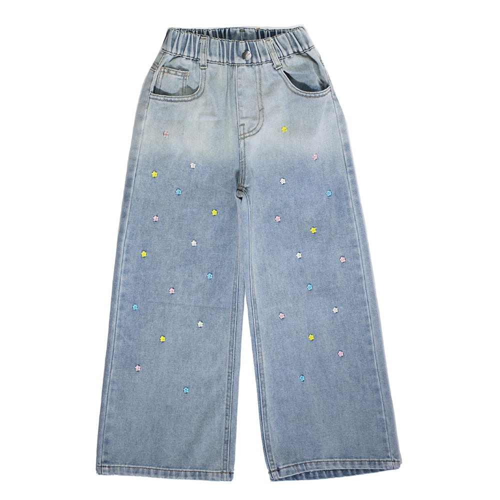 Модные джинсы свободного кроя с эффектом цветового перехода. Мягкий светло голубой оттенок у пояса плавно перетекает в насыщенный к низу. Выполнены из денима средней плотности. Широкие штанины и пояс на удобной резинке обеспечат комфорт в течение всего дня. Главная изюминка модели — милые нежные цветочки, вышитые на брюках . Этот романтичный декор придает модели неповторимый шарм.