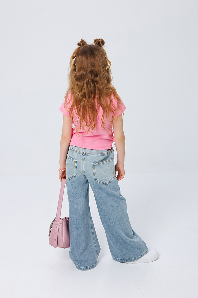 Джинсы для девочки с градиентом и вышивкой.