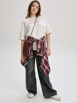 Футболка свободного кроя из мягкого трикотажа с минималистичным принтом. Прямой, расширенный силуэт создает ощущение легкости и свободы.