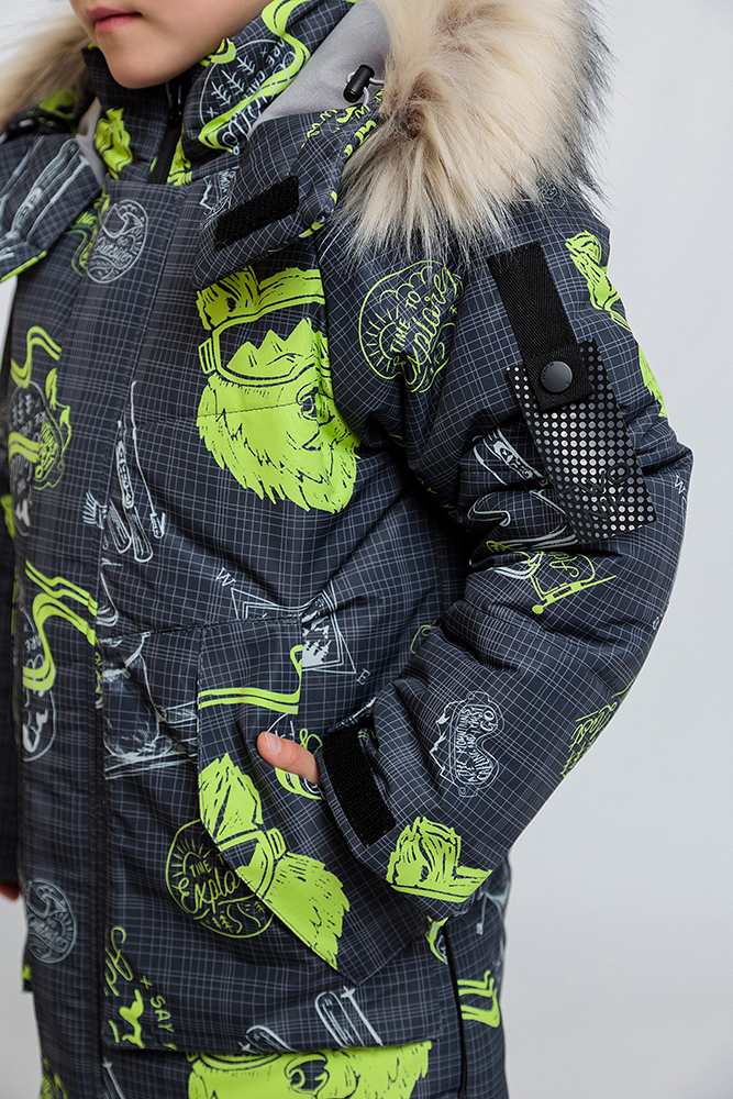 Мембранная ткань с контрастным принтом (тёмно-серый/лайм)